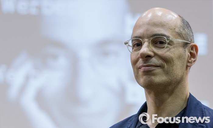 (서울=포커스뉴스) 16일 오후 서울 종로구 서울예술고등학교를 찾은 프랑스 작가 베르나르 베르베르가 '오늘날의 예술적 지능'이란 주제로 학생들에게 강연하고 있다.