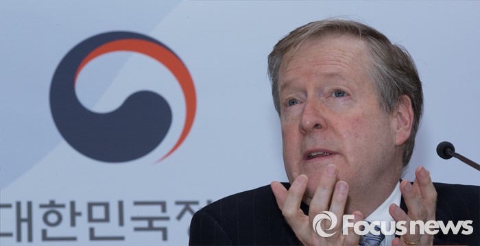 (세종=포커스뉴스) 랜달 존스(Randall Jones) OECD 사무국 선임이코노미스트가 16일 오후 세종시 정부세종청사 기획재정부 브리핑룸에서 OECD 한국경제보고서를 발표하고 있다.