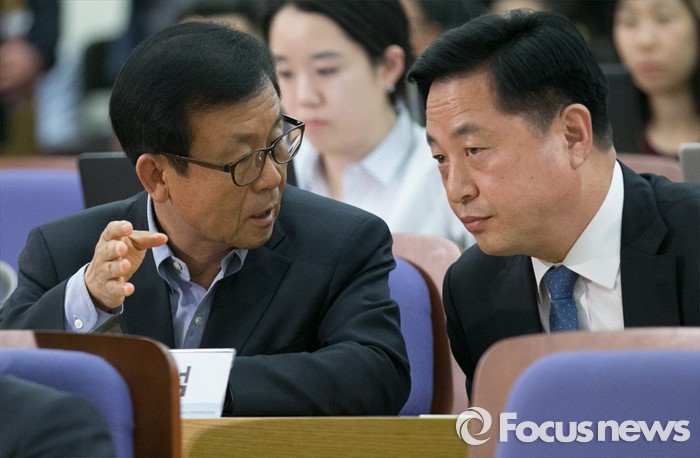 (서울=포커스뉴스) 16일 오후 서울 여의도 국회 의원회관에서 열린 '20대 국회, 협치 가능한가' 토론회에 참석한 원혜영(가운데) 더불어민주당 의원과 김두관 당선인이 대화하고 있다.