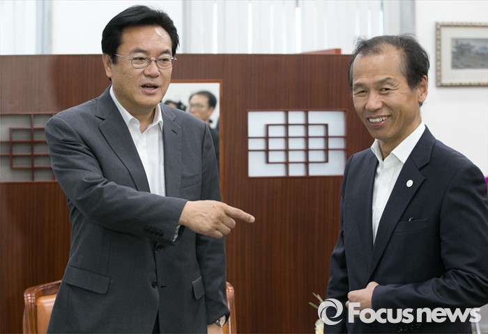 최문순 지사는 이날 오후 서울 여의도 국회 새누리당 원내대표실에 방문해 정진석 원내대표와 만났다. 최 지사는 이날 오전 박지원 국민의당 원내대표, 우상호 더불어민주당 원내대표와의 면담에 이어 세 번째로 정 원내대표를 찾았다.