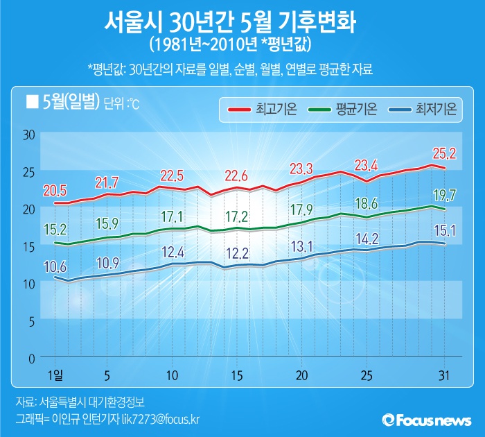 | △ [그래픽] 서울시 30년간 5월 기후변화(1981년~2010년 평년값) |