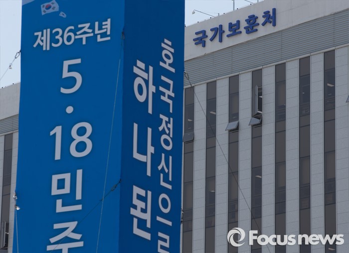 (세종=포커스뉴스) 5·18 민주화운동기념식을 하루 앞둔 17일 오전 세종시 정부세종청사 국가보훈처 앞에 기념식을 알리는 홍보탑이 설치돼 있다. 국가보훈처는 5·18 민주화운동 기념식에서 '임을 위한 행진곡' 제창을 불허결정을 내렸다.