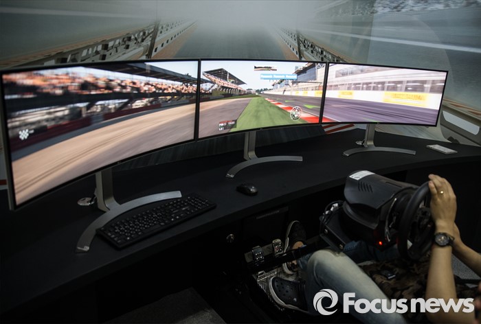(서울=포커스뉴스) 17일 오전 서울 강남구 코엑스에서 열린 '월드 IT쇼 2016' 의 LG전자 부스를 찾은 한 관람객이 곡면 디스플레이를 체험하고 있다.