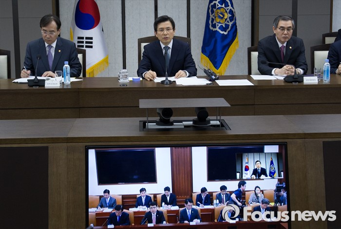 (세종=포커스뉴스) 황교안 국무총리가 17일 오후 세종시 정부세종청사 1동 대회의실에서 서울-세종 영상회의로 열린 국가정책조정회의에 참석해 회의를 주재하고 있다.