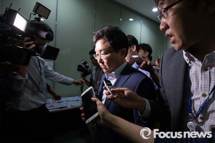 (서울=포커스뉴스) 김용태 새누리당 의원이 17일 오후 서울 여의도 정론관에서 혁신위원장 사퇴 의사를 밝힌 후 국회 기자회견장을 떠나고 있다.