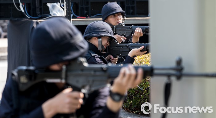 (서울=포커스뉴스) 17일 오후 서울 서초구 JW메리어트호텔 서울에서 민·관·군 관계자들이 2016 재난대응 안전한국훈련을 하고 있다.