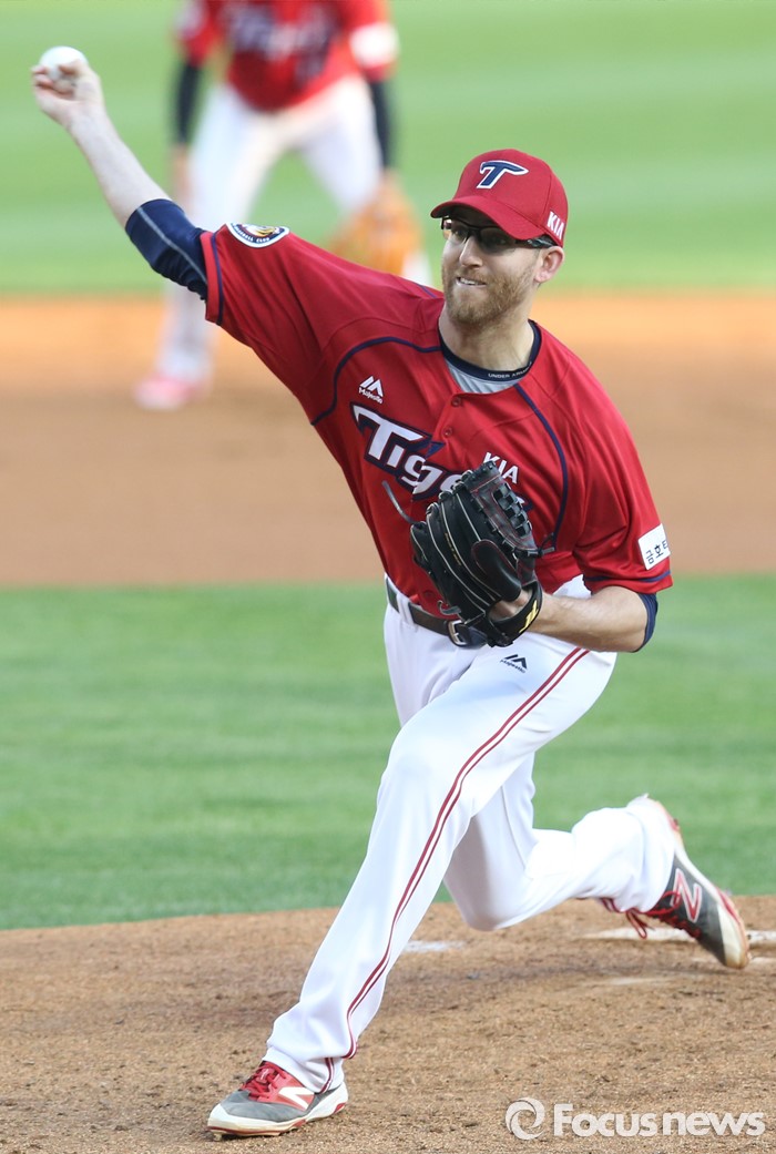 (서울=포커스뉴스) 17일 서울 잠실구장에서 열린 2016프로야구 KIA-두산 경기에서 1회말 KIA 선발투수 지크가 투구하고 있다.