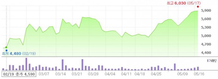 이에 따라 동국S&C에 대한 목표주가를 종전 5800원에서 8000원으로 상향 조정했다.최근 3개월간 동국S&C 주가 추이 <그래픽출처=네이버>