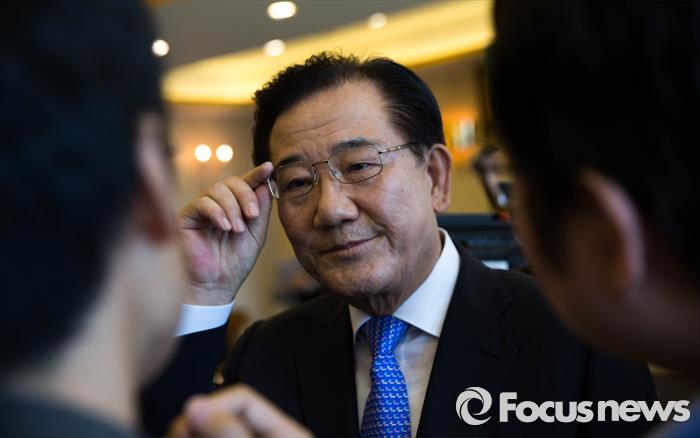 | △ 창당 선언 후 기자들과 이야기를 나누고 있는 박준영 전 전남지사 |