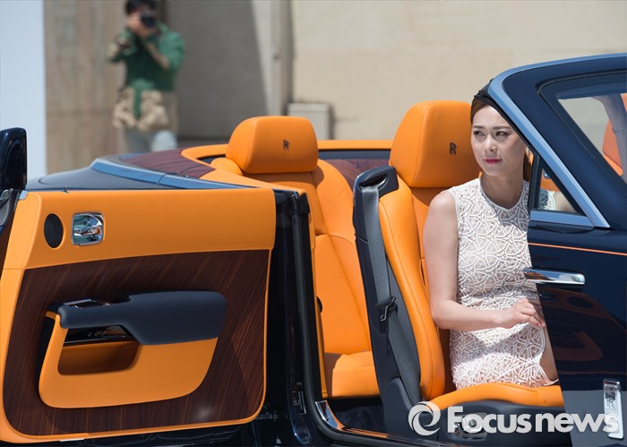 (서울=포커스뉴스) 18일 오전 서울 중구 반얀트리 클럽 앤 스파에서 열린 '롤스로이스 던(DAWN) 발표 행사중 한 모델이 신차에 탑승해 포즈를 취하고 있다.