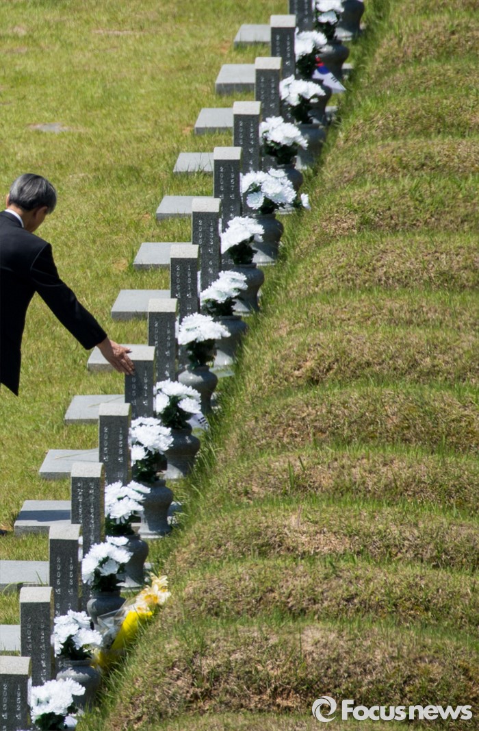 (광주=포커스뉴스) 36주년 5·18민주화운동 기념식이 거행된 18일 오전 광주 북구 운정동 5·18민주묘지에서 유가족들이 희생자를 기리고 있다.