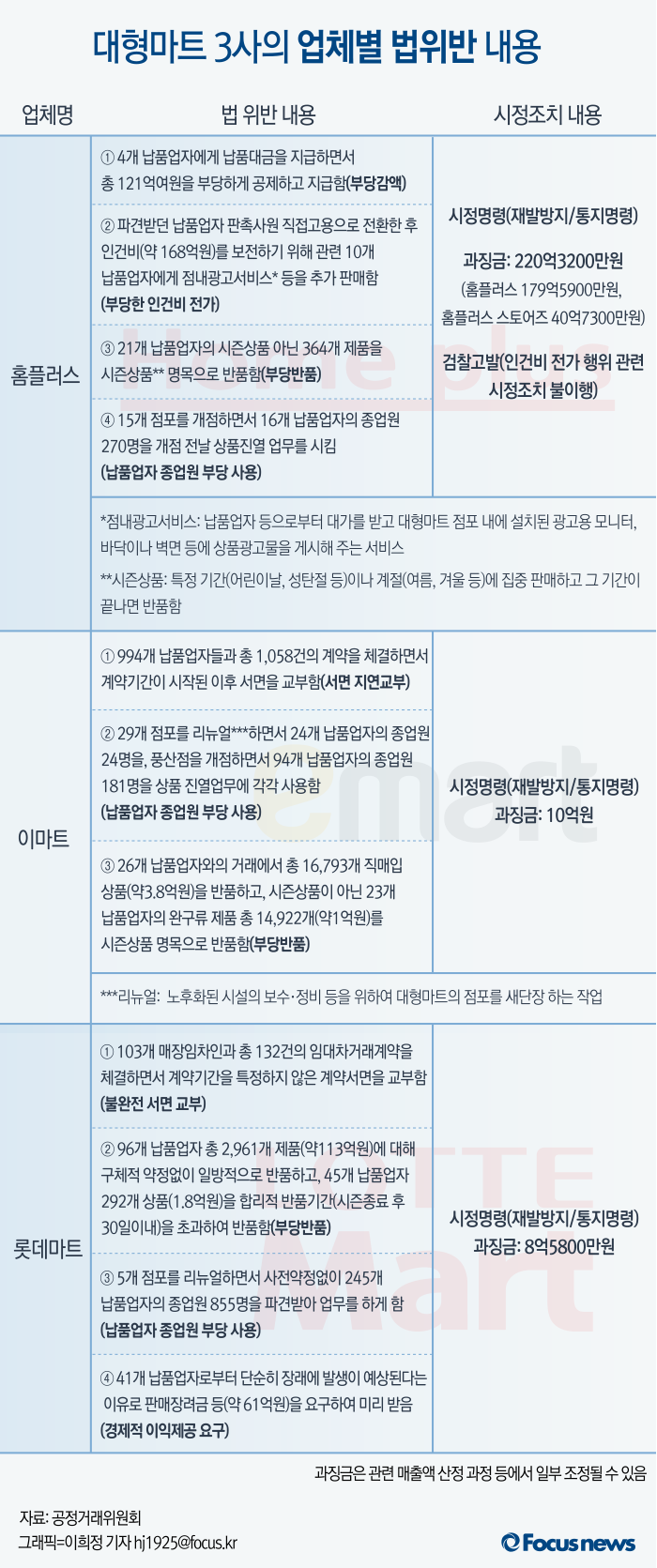 | △ [그래픽] 대형마트 3사의 업체별 법위반 내용 |
