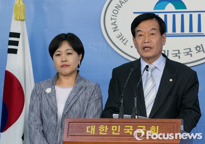 (서울=포커스뉴스) 서상기(오른쪽) 새누리당 의원과 송희경 당선인이 18일 오후 서울 여의도 국회 정론관에서 국방부가 준비 중인 이공계 대체복무 폐지 계획과 관련 현장의견 청취 및 당·정간 논의 필요성 등을 전하는 기자회견을 하고 있다.