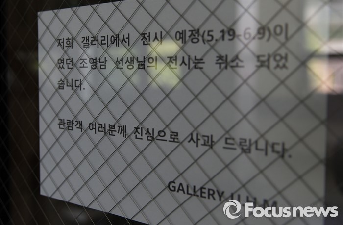 | △ 조영남 전시 취소 안내문 붙은 갤러리 |
