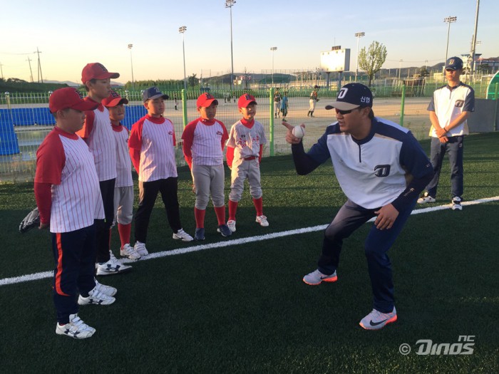 지난 시즌 뒤 은퇴 손민한, NC 연고지역 유소년 야구팀 순회지도…초등학교 찾아 티볼교육에도 참가