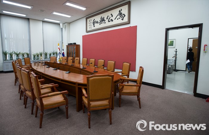(서울=포커스뉴스) 18일 오후 서울 여의도 국회 새누리당 원내대표실이 텅 비어있다. 정진석 원내대표는 전날 오후 비상대책위·혁신위 추인이 무산되는 사태가 벌어진 후 18일 오전 광주 국립 5·18 민주묘지에서 열린 제36주년 5·18 민주화운동 기념식에 참석하고 지역구인 충남 공주로 자리를 옮겼다.