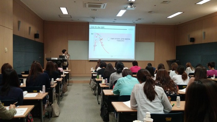 풀무원 식문화연구원 식생활연구실 남기선 실장은 "자녀의 건강을 위한 올바른 식습관 형성은 부모나 보육교사의 영향이 절대적인 만큼, 본 교육을 통해 어린이 보육자의 바른 식생활을 유도하는 교육 전문가를 꾸준히 양성하겠다"고 말했다.지난해 6월 27일 연세대학교 공학원 1층 제1세미나실에서 진행된 '제4기 로하스 전문 영양사 과정'에서 수강생들이 풀무원 남기선 실장의 '부모와 자녀가 함께 실천하는 로하스 식생활' 수업을 듣고 있다.<사진제공=풀무원>