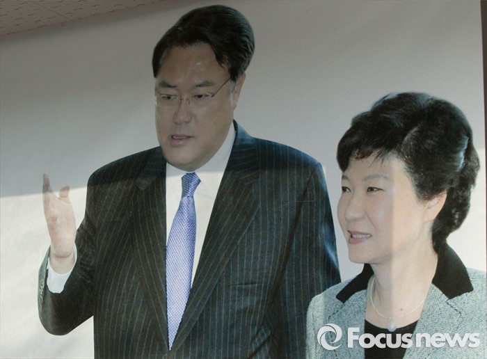 | △ 정진석 새누리원내대표 박 대통령과 함게 찍은 사진 현수막 |