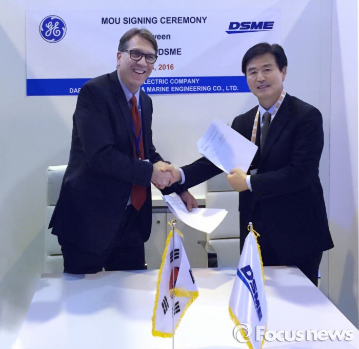 (서울=포커스뉴스) 대우조선해양과 미국 GE가 저유가 시대에도 지속 가능한 경쟁력 있는 FPSO, FLNG 등 해양 생산설비 신제품 개발을 위해 협력키로 했다