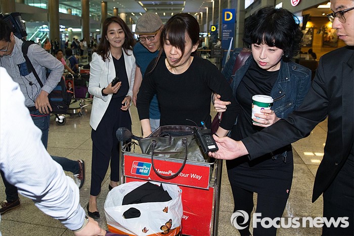 (인천공항=포커스뉴스) 한국인 최초 맨부커상을 수상한 소설 '채식주의자' 저자 한강이 19일 오전 인천국제공항을 통해 귀국하고 있다.