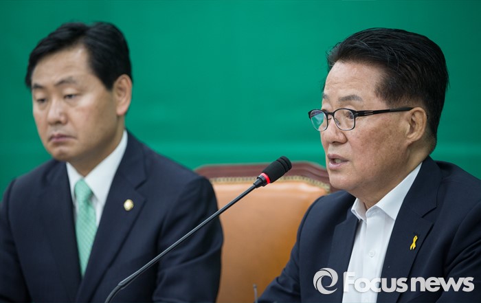 (서울=포커스뉴스) 박지원(오른쪽) 국민의당 원내대표가 19일 오전 서울 여의도 국회에서 열린 국민의당 원내대책회의에서 모두발언을 하고 있다. 왼쪽은 김관영 원내수석부대표