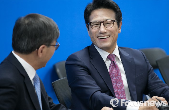 (서울=포커스뉴스) 19일 오전 서울 여의도 국회 의원회관에서 열린 '2016년 미국 대선 현장과 한인들의 풀뿌리 정치' 세미나에 참석한 정병국(오른쪽) 새누리당 의원이 김동석 미국시민참여센터 상임이사와 대화하고 있다.