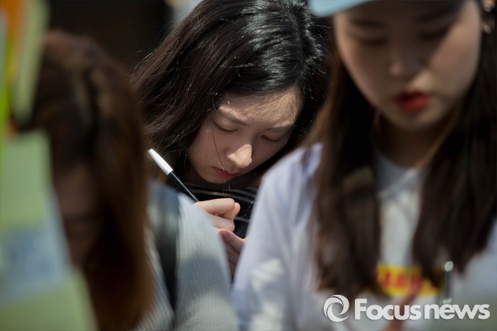 하늘에 닿을 메시지 적는 시민들