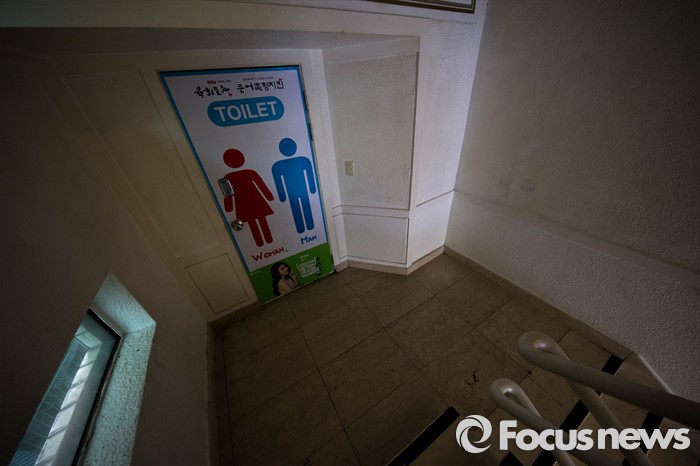 (서울=포커스뉴스) 19일 오전 서울 서초구 강남역 인근 '묻지마 살인' 현장의 화장실이 폐쇄되어 있다.