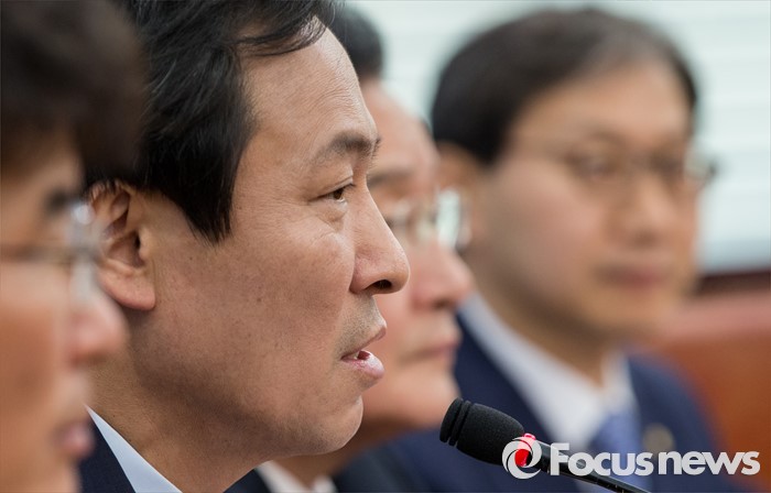(서울=포커스뉴스) 19일 오전 여의도 국회에서 열린 더불어민주당 원내대표단 회의에 참석한 우상호 신임 원내대표가 모두발언 하고 있다.