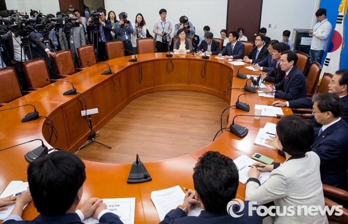 (서울=포커스뉴스) 19일 오전 여의도 국회에서 열린 더불어민주당 원내대표단 회의에 참석한 우상호 신임 원내대표가 모두발언 하고 있다.