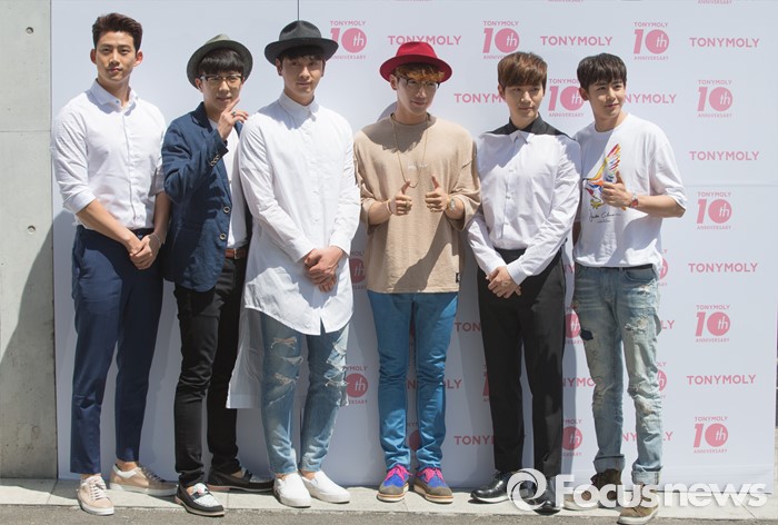 (서울=포커스뉴스) 19일 오전 서울 종로구 아름지기에서 토니모리 10주년 기념행사 '뷰티 에비뉴' 에 참석한 아이돌그룹 2PM의 멤버들이 포토타임을 갖고 있다.
