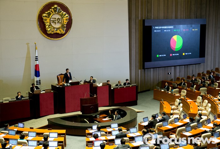 (서울=포커스뉴스) 19일 오전 서울 여의도 국회에서 열린 342회 국회(임시회) 1차 본회의에서 국회법 일부개정법률안(위원회안)이 재석 222인 중 찬성 117인, 반대 79인, 기권 26인으로 통과되고 있다.