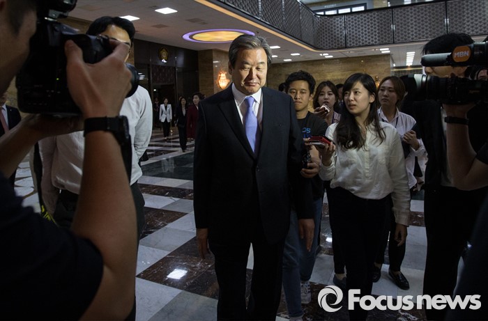 (서울=포커스뉴스) 19일 오후 서울 여의도 국회에서 열린 342회 국회(임시회) 1차 본회의에 참석한 김무성 새누리당 전 대표가 본회의가 정회된 후 회의장을 빠져나오다 취재진의 질문을 받고 있다.
