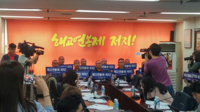 19일 서울 종로 금융산업노동조합 사무실에서 열린 기자회견서 김대업 산업은행 노조위원장은 "현재로선 산은에 자본확충이 필요하지 않다. 산은의 BIS기준 자기자본비율은 14%대로 시중은행과 비슷한 수준"이라고 지적했다.