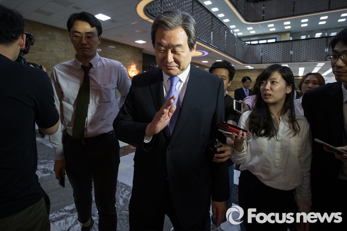 (서울=포커스뉴스) 19일 오후 서울 여의도 국회에서 열린 342회 국회(임시회) 1차 본회의에 참석한 김무성 새누리당 전 대표가 본회의가 정회된 후 회의장을 빠져나오다 취재진의 질문을 받고 있다.
