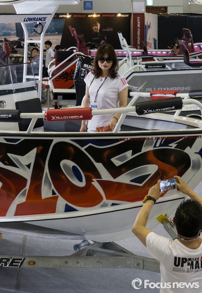 (고양=포커스뉴스) 19일 오후 경기 고양시 킨텍스 제1전시관에서 열린 2016 경기국제보트쇼를 찾은 관람객들이 보트 위에서 기념촬영을 하고 있다.