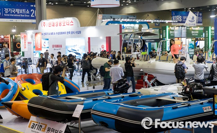 (고양=포커스뉴스) 19일 오후 경기 고양시 킨텍스 제1전시관에서 열린 2016 경기국제보트쇼에 참가한 모델이 보트 위에서 포즈를 취하고 있다.