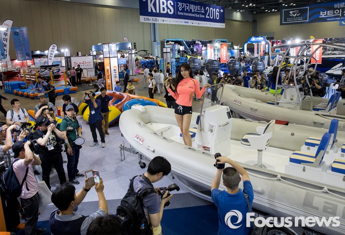 (고양=포커스뉴스) 19일 오후 경기 고양시 킨텍스 제1전시관에서 열린 2016 경기국제보트쇼에 참가한 모델이 보트 위에서 포즈를 취하고 있다.