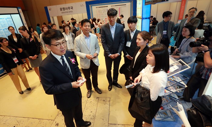 (서울=포커스뉴스) 고영선 고용노동부 차관이 19일 서울 삼성동 코엑스에서 열린 글로벌 취업상담회에 참석, 취업상담회 각 부스를 돌아보며 해외취업희망 청년들과 기업관계자들의 애로사항을 청휘하며 격려하고 있다. <사진제공=고용노동부>