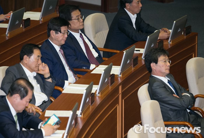 (서울=포커스뉴스) 19일 오후 서울 여의도 국회에서 열린 342회 국회(임시회) 1차 본회의에 참석한 유승민, 이재오, 강길부, 김태환 무소속 의원이 자리하고 있다.