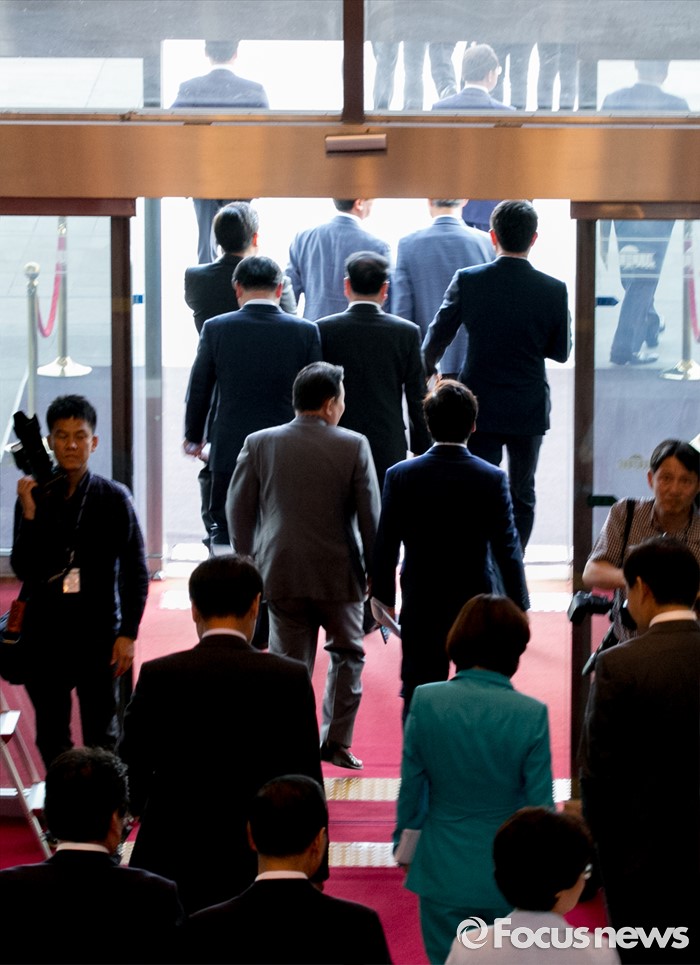 (서울=포커스뉴스) 19일 오후 서울 여의도 국회에서 19대 국회 마지막 본회의를 마친 의원들이 본청을 나서고 있다.