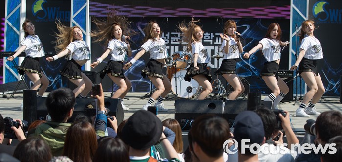 (서울=포커스뉴스) 19일 오후 서울 종로구 성균관대 캠퍼스에서 걸그룹 우주소녀의 멤버들이 'Y24 스쿨어택' 행사에 참여하고 있다.