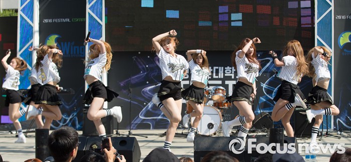 (서울=포커스뉴스) 19일 오후 서울 종로구 성균관대 캠퍼스에서 걸그룹 우주소녀의 멤버들이 'Y24 스쿨어택' 행사에 참여하고 있다.