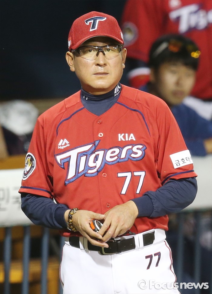 (서울=포커스뉴스) 19일 서울 잠실구장에서 열린 2016프로야구 KIA-두산 경기 4회말 KIA 김기태 감독이 포수 백용환을 부르고 있다.