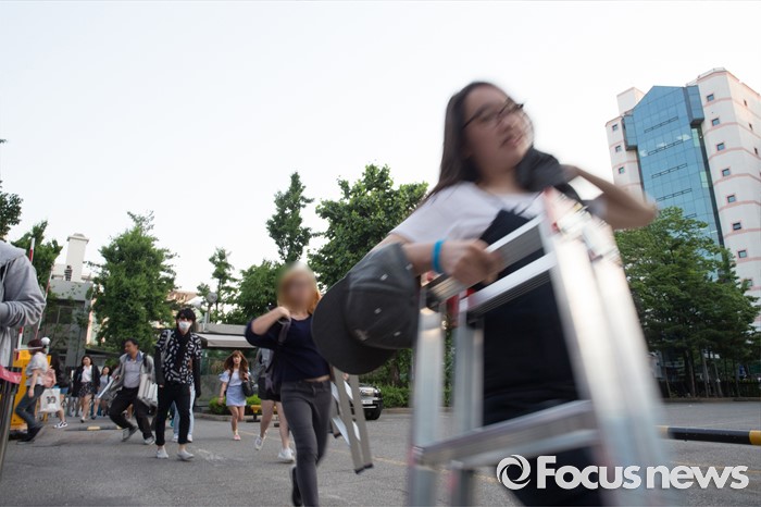 (서울=포커스뉴스) 20일 오전 서울 영등포구 KBS에서 생방송 뮤직뱅크 리허설에 참여하는 가수들을 촬영하기 위해 팬들이 포토라인으로 이동하고 있다.