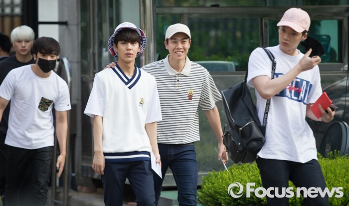 (서울=포커스뉴스) 20일 오전 서울 영등포구 KBS에서 아이돌 그룹 소년공화국의 멤버들이 생방송 뮤직뱅크 리허설에 참여하기 위해 이동하고 있다.