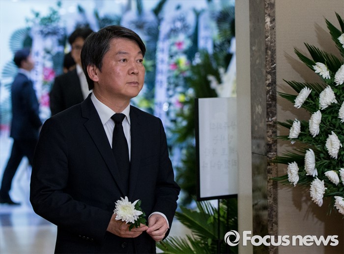 (서울=포커스뉴스) 20일 오전 서울 송파구 아산병원 장례식장에 마련된 故 김재순 전 국회의장의 빈소를 찾은 안철수 국민의당 상임공동대표가 헌화를 위해 발걸음을 옮기고 있다.