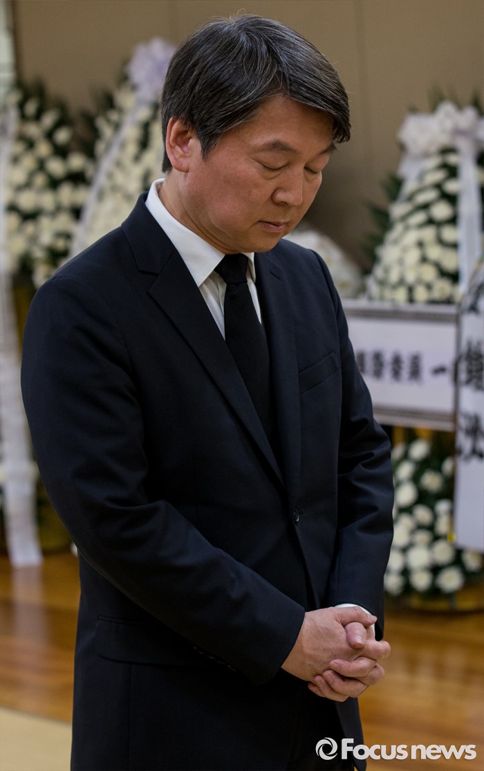 (서울=포커스뉴스) 20일 오전 서울 송파구 아산병원 장례식장에 마련된 故 김재순 전 국회의장의 빈소를 찾은 안철수 국민의당 상임공동대표가 헌화 후 기도하고 있다.