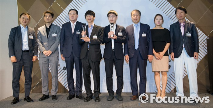 (서울=포커스뉴스) 이세돌(왼쪽 네번째) 9단, 양건(왼쪽 두번째) 프로기사회 회장을 비롯한 내빈들이 20일 오전 서울 종로구 플라자호텔에서 열린 한국기원 맥심커피배 시상식에 참석해 기념촬영을 하고 있다.