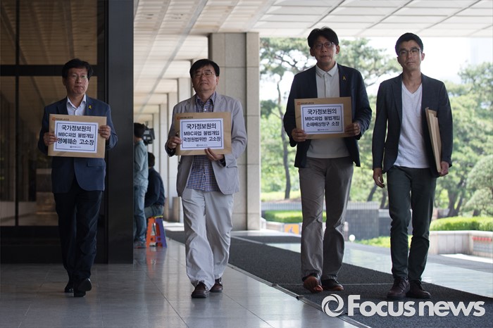 (서울=포커스뉴스) 전국언론노동조합이 MBC파업 개입 국정원 고소 및 손해배상 청구 관련 고발장 접수를 위해 20일 오전 서울중앙지방검찰청으로 들어서고 있다.